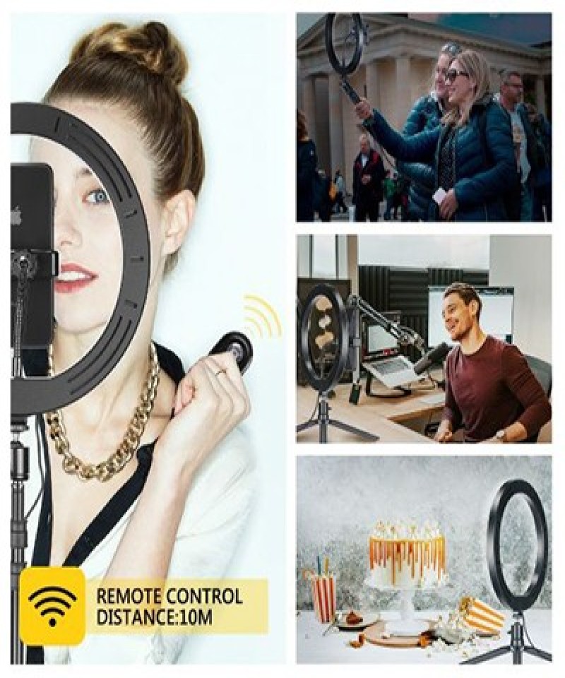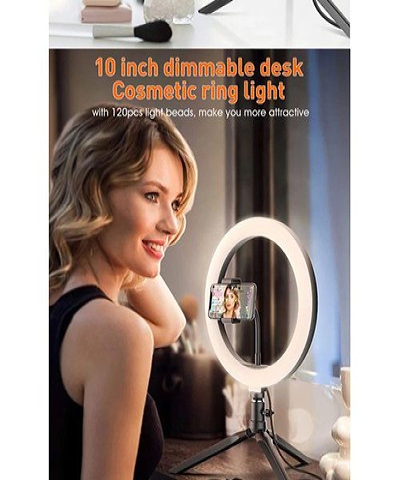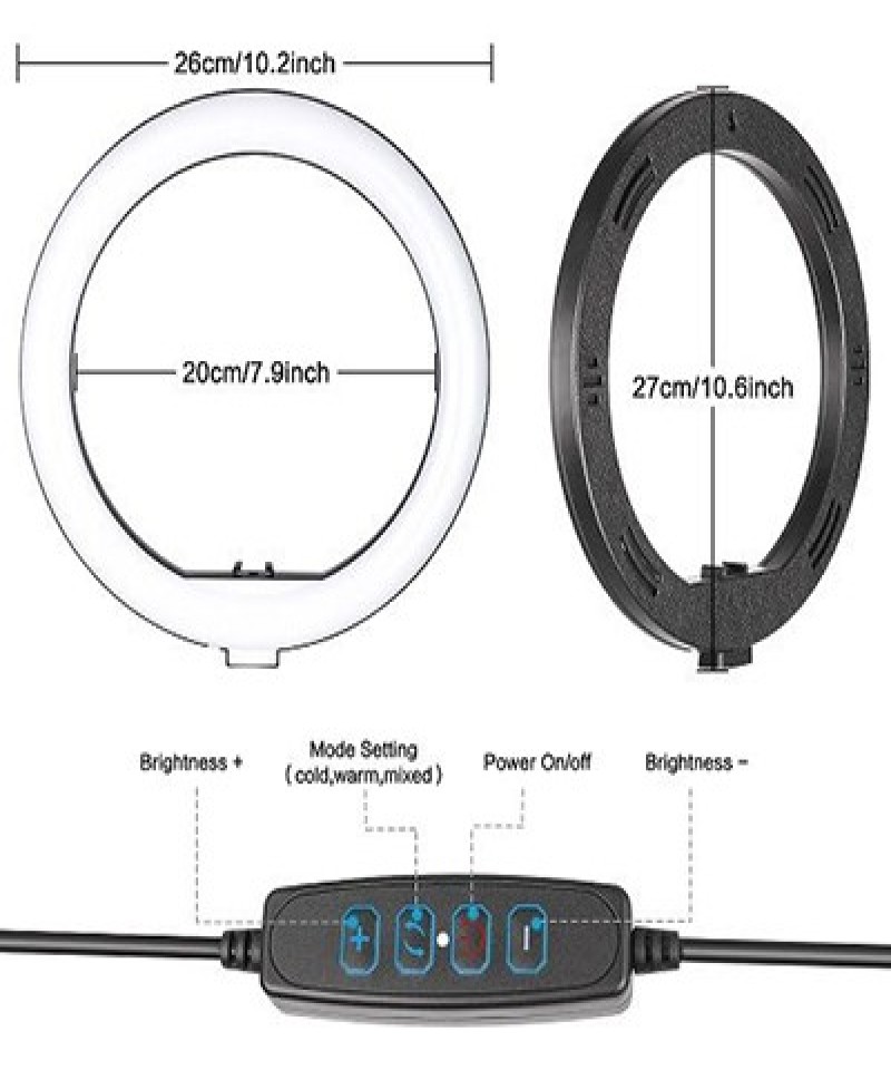Dimmable 10inch LED Ring Light with a wide dimming range from 1%-100%.Special LED design, lightweight and portable.