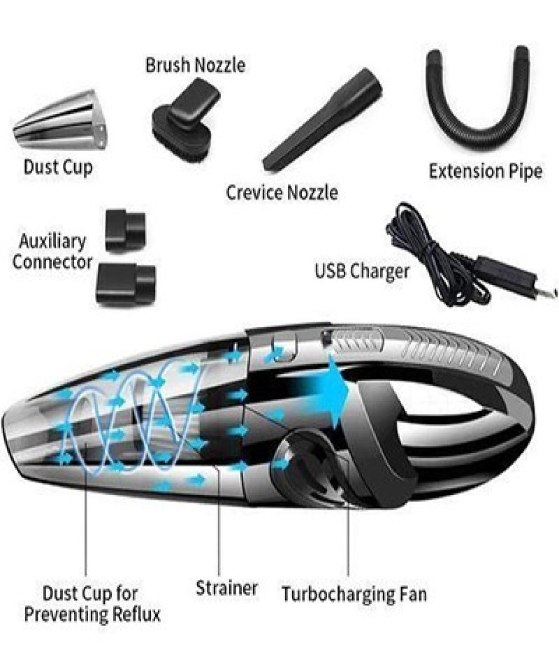 Keep your car and home spotless with the powerful and convenient Handheld Car Vacuum Cleaner. This compact vacuum cleaner is designed for both automotive and household use, offering exceptional suction power and versatility.